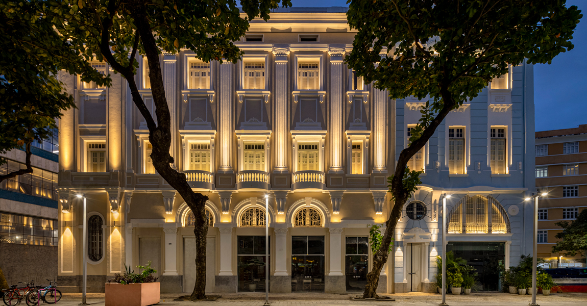 A fachada do Complexo Niágara S/A, assinada pelo Estúdio Carlos Fortes, resgata a imponência histórica do edifício com um olhar contemporâneo. A intervenção valoriza as linhas originais da construção, realçando sua presença no Recife Antigo. O projeto de iluminação e restauro revela o diálogo entre o patrimônio e a inovação, simbolizando o espírito da CASACOR Pernambuco 2025: um encontro entre passado e futuro, tradição e sonho.